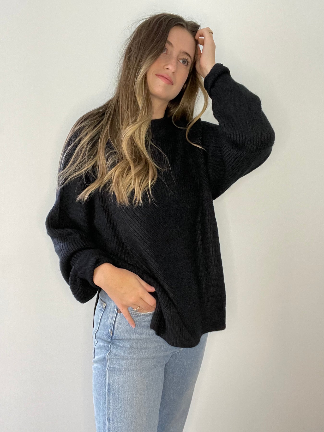 An ultra-soft, classic knit sweater with bubble sleeves and a crew neck. This flattering silhouette is definitely an everyday staple.